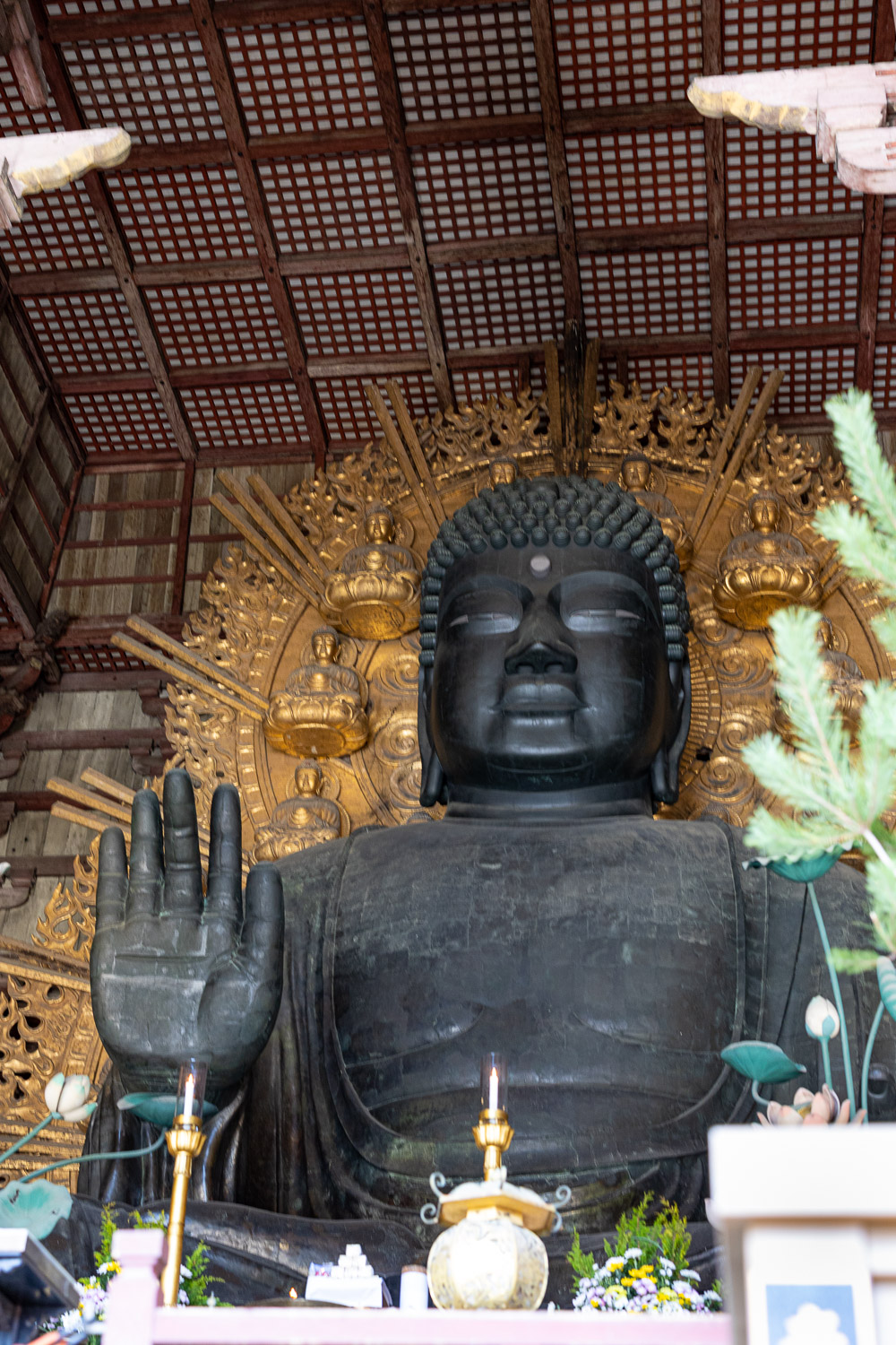 Nearby, the lantern-lined path to Kasuga Taisha Shrine — its 3,000 bronze and stone lanterns lit twice yearly in a ceremony unchanged for over a millennium — feels less like sightseeing and more like crossing into another era.